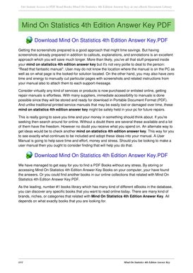 Download MIND ON STATISTICS 4TH EDITION ANSWER KEY Kindle Editon
